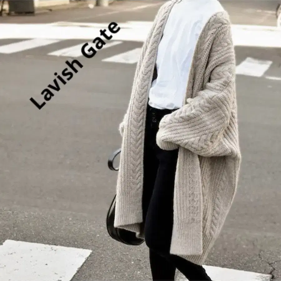 Lavish Gate 롱 기장 케이블 무늬 니트 가디건