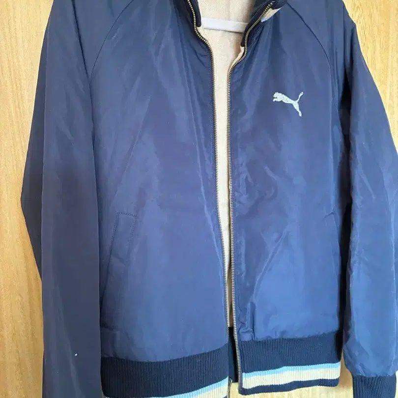 네이비와 베이지 색상의 집업 자켓, 리브 니트 소매와 밑단, Puma 자수 로고 포함. - 브랜드: Puma - 색상: 네이비 - 색상: 베이지 리버서블이며 원단도 다르기 때문에 양쪽 모두 즐길 수 있습니다. 둘 다 코디하기 쉬웠습니다. - 디자인: 집업 자켓 - 디자인: 포켓 부착 - 특징: 리브 니트 소매와 밑단 - 로고: 자수 로고 베이지 색상에는 일부 가방에 의한 긁힘 자국이 있지만 눈에 띄는 정도는 아닙니다. 이미지로 확인 부탁드립니다. 방문해 주셔서 감사합니다.