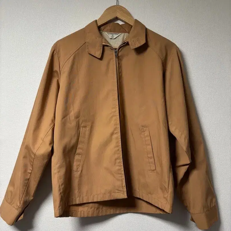 60~70년대 스윙탑 자켓입니다. 금속 지퍼, 메쉬 안감 등 당시의 사양이 특징입니다. 색상: 카멜 사이즈: M 상당 기장 62 / 가슴 너비 51 / 어깨 너비 44 / 소매 길이 62 (cm) 개인 측정으로 인한 약간의 오차는 양해 부탁드립니다. 구제 의류이므로 미세한 사용감은 있지만, 큰 데미지 없이 전반적으로 양호합니다. 방문해 주셔서 감사합니다.