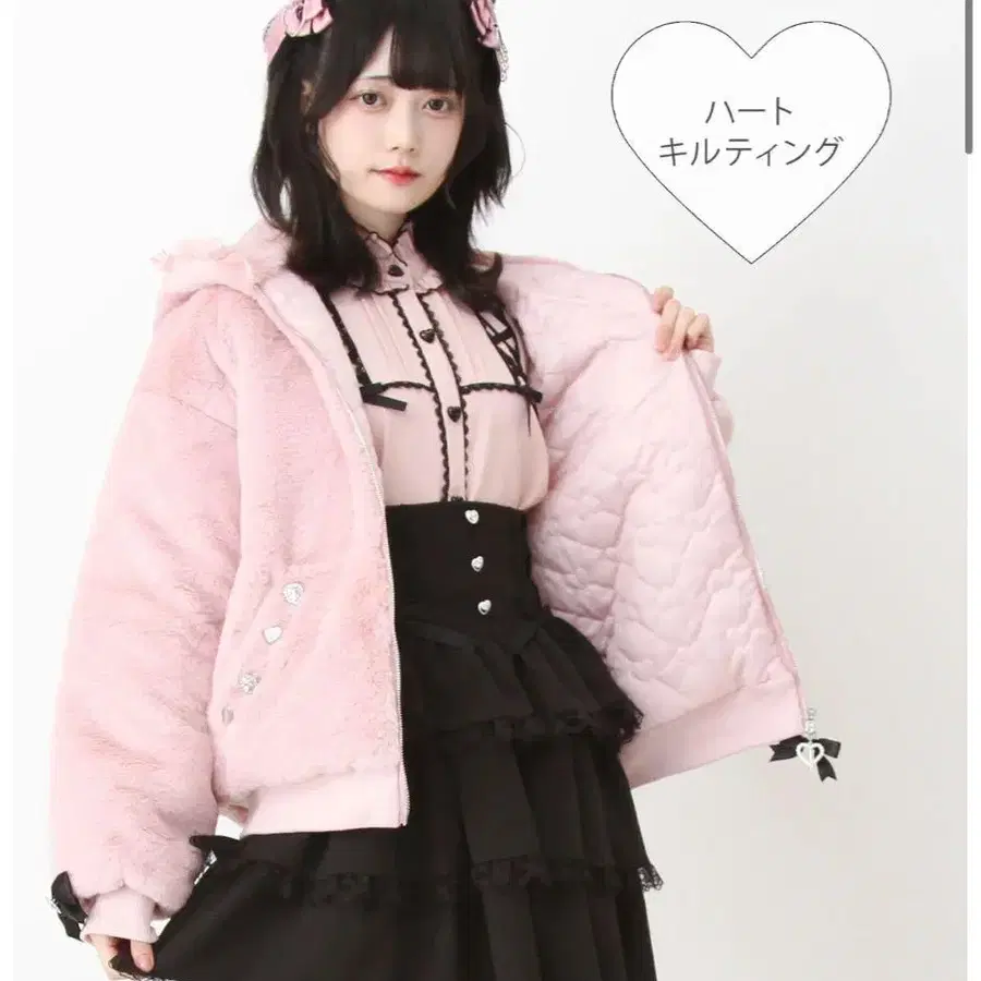시착만 한 상태입니다. 상당히 도톰한 원단이라 추운 겨울에도 괜찮을 것 같습니다. 사이즈 M-L 정가 12,990엔 [ 디자인 ] 포켓과 소매에 반짝이는 비쥬가 뿌려진 귀여운 퍼 블루종입니다 ♪ 안감은 하트 퀼팅 사양으로 충전솜이 들어 있어 따뜻한 아우터입니다. 후드에는 귀여운 하트 레이스가 장식되어 있습니다. 넉넉하게 입을 수 있는 귀여운 퍼 블루종입니다 ♪ [ 소재 ] 퍼 소재를 사용했습니다. 안감은 충전솜 퀼팅 사양입니다. [ 코디네이트 ] 다양한 코디에 맞춰 입을 수 있는 아우터입니다 ♪ 셋업이나 원피스에 맞추거나 캐주얼한 코디에도 딱입니다 ♪ [ 소재 ] [퍼, 안감, 레이스]폴리에스테르 : 100% / [리브]면 : 100% / [ 비침 ] 없음 [ 원단 두께 ] 두꺼운 원단 [ 안감 ] 있음 [ 신축성 ] 없음 [ 생산국 ] 중국