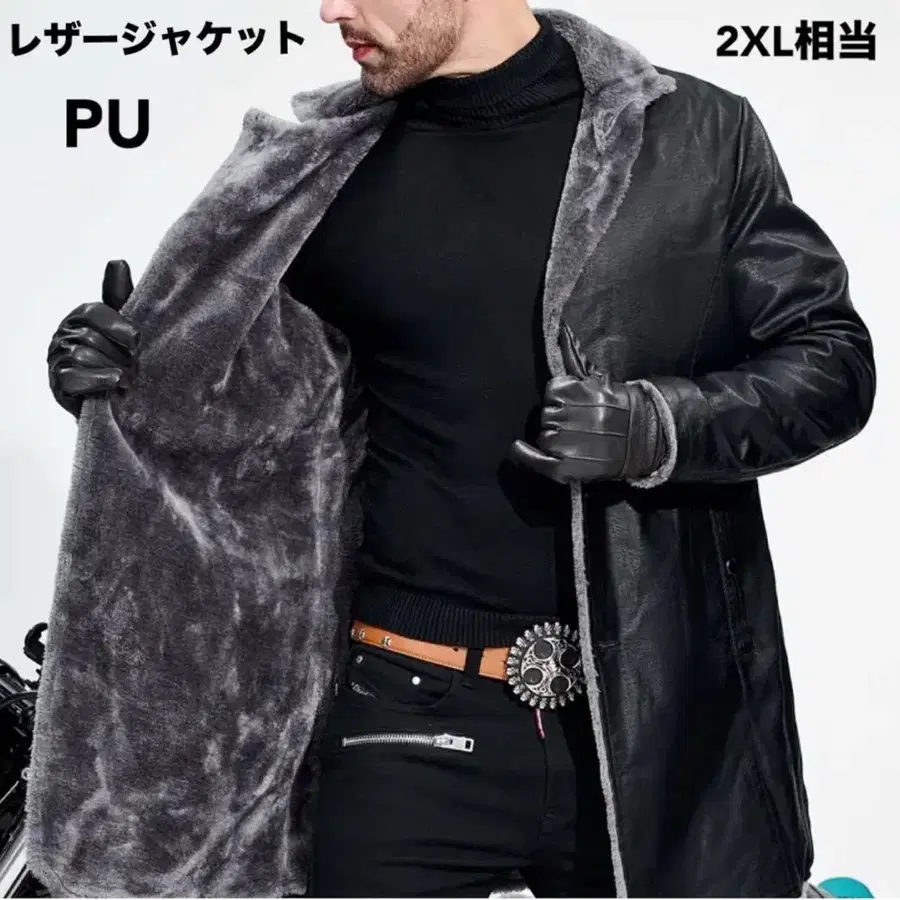미사용 가죽 자켓 코트 PU 2XL 상당 블랙 플리스 큰 버튼