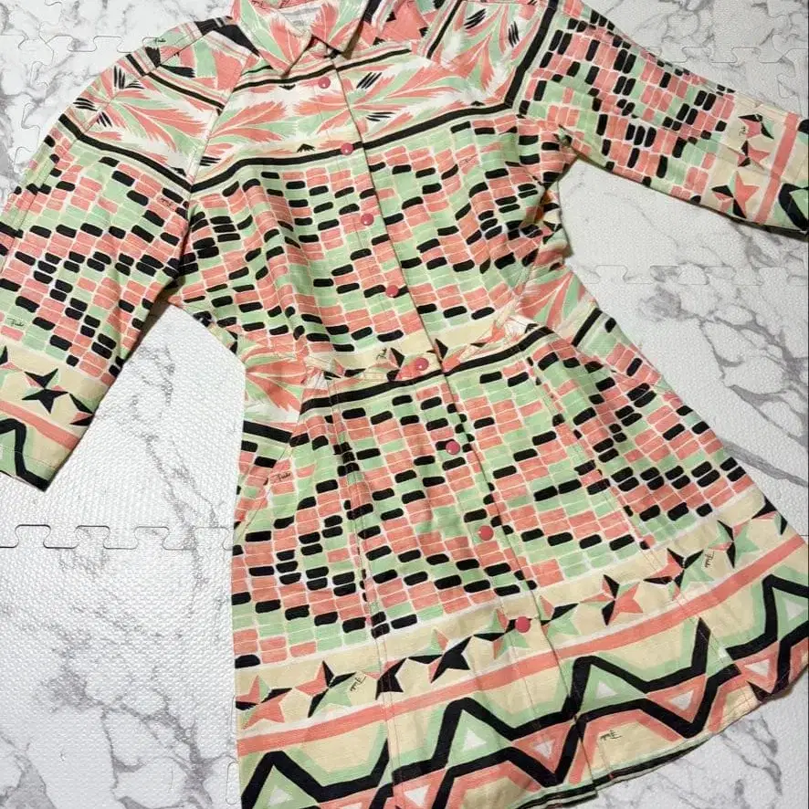 EmilioPucci의 셔츠 자켓입니다. 엉덩이를 덮는 튜닉 기장으로, 로고와 별이 들어간 네이티브 패턴이 귀엽습니다! 적당한 두께감이 있어 단품으로도 아우터로도 활용하기 좋습니다. 몇 번 사용했지만 눈에 띄는 얼룩이나 올풀림 없이 계속 사용할 수 있습니다. 사이즈 38 컬러 - 코랄 핑크, 그린, 아이보리 소재 - 코튼 40%, 린넨 60% #EmilioPucci #에미리오푸치 #셔츠 #튜닉 #자켓