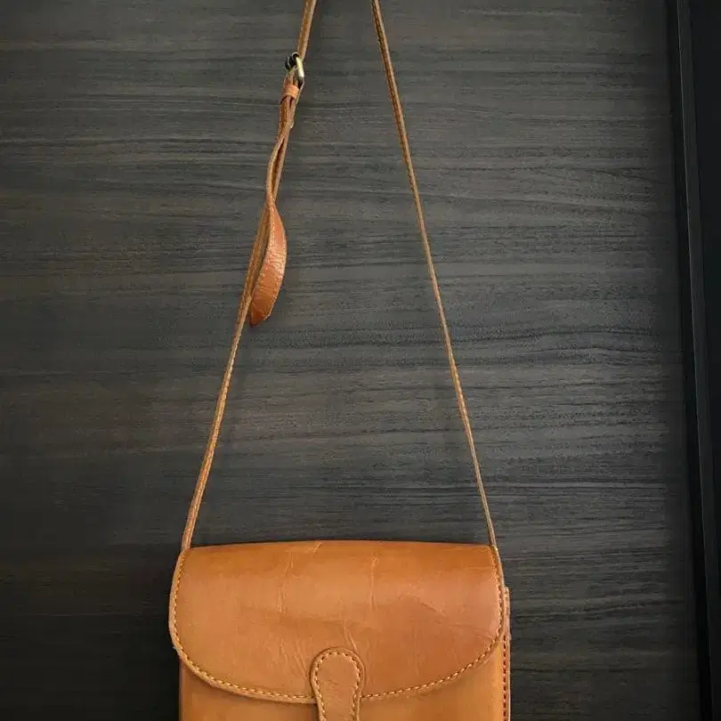 조절 가능한 숄더 스트랩이 달린 가죽 플랩 백.