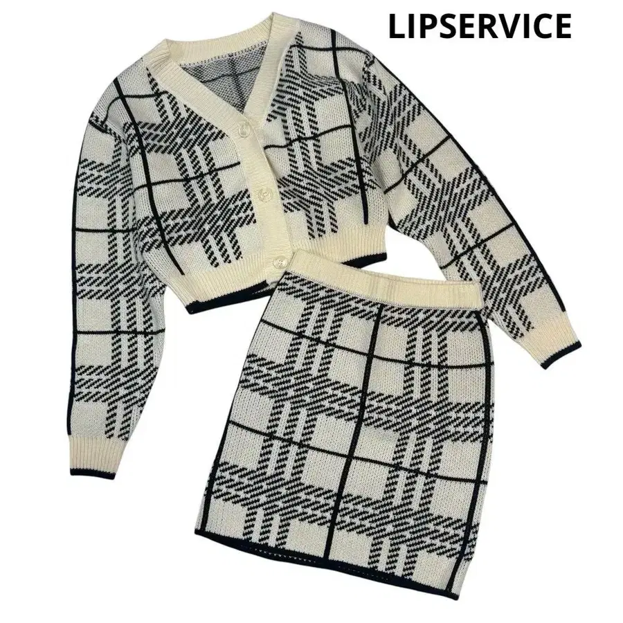 LIPSERVICE 립 서비스 셋업 스커트 체크 무늬 니트