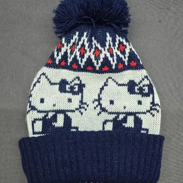 산리오 헬로키티 니트 모자 폼폼 포함 노르딕 무늬 네이비