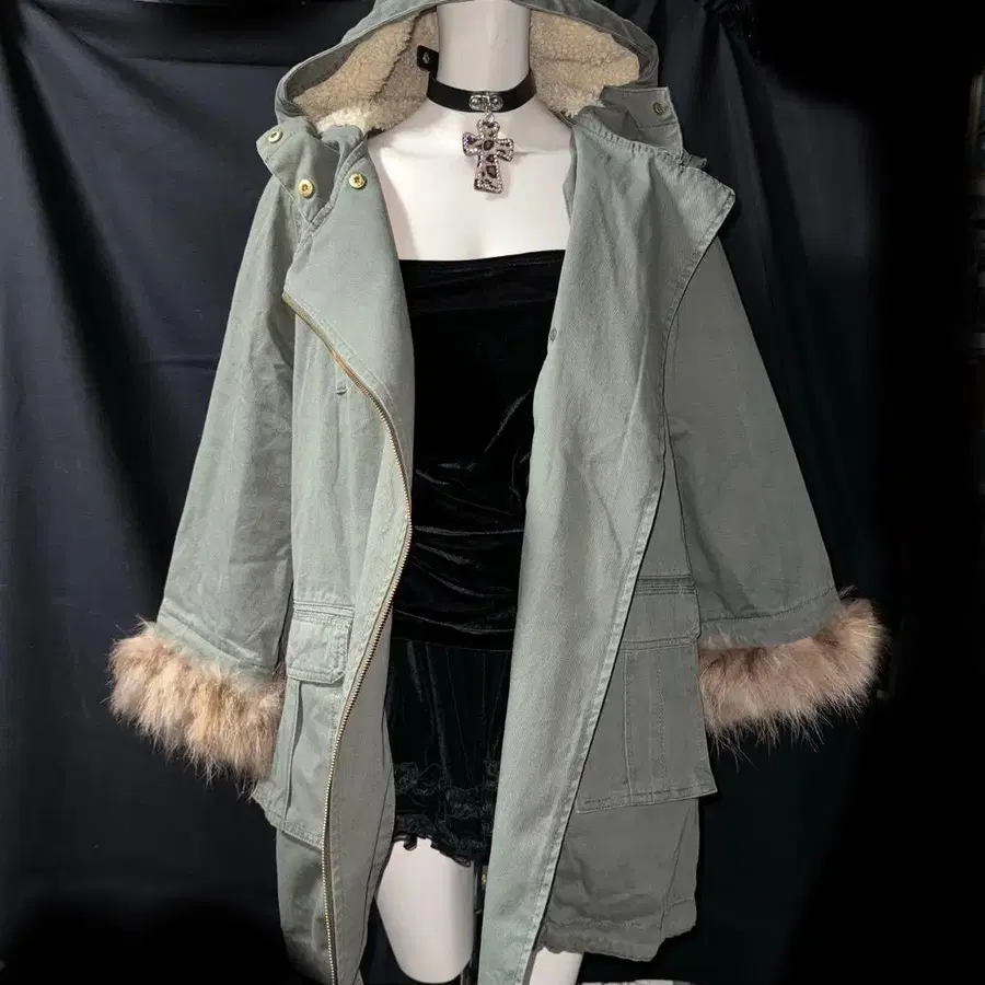 헤이세이 갸루 Y2K 그런지 퍼 코트 밀리터리 기믹