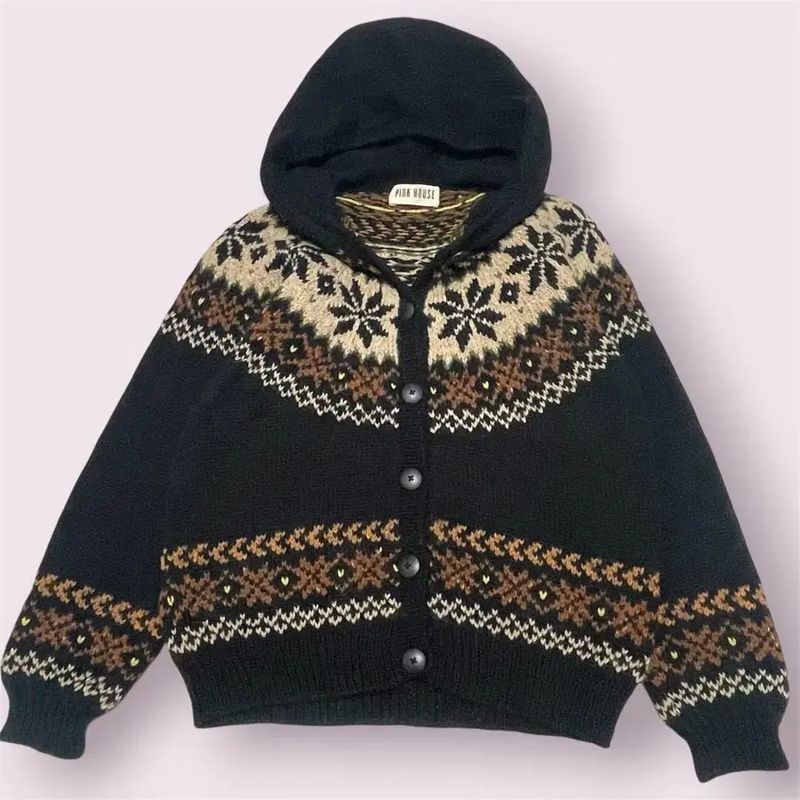 PINKHOUSE 핑크하우스 노르딕 무늬 가디건 후드 부착 레어