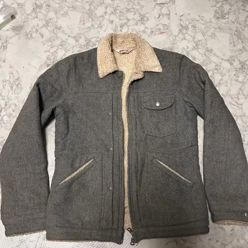 울 혼방 그레이 자켓, 보아 안감 부착으로 따뜻하며, 지퍼와 프론트 포켓이 특징입니다. 168cm 착용 시 적당한 기장감입니다. - 브랜드: Wrangler - 색상: 그레이 - 소재: 울 혼방 - 안감: 보아 - 포켓: 프론트 포켓 2개 - 디자인: 지퍼 - 세탁 방법: 세탁기 사용 가능 방문해 주셔서 감사합니다.