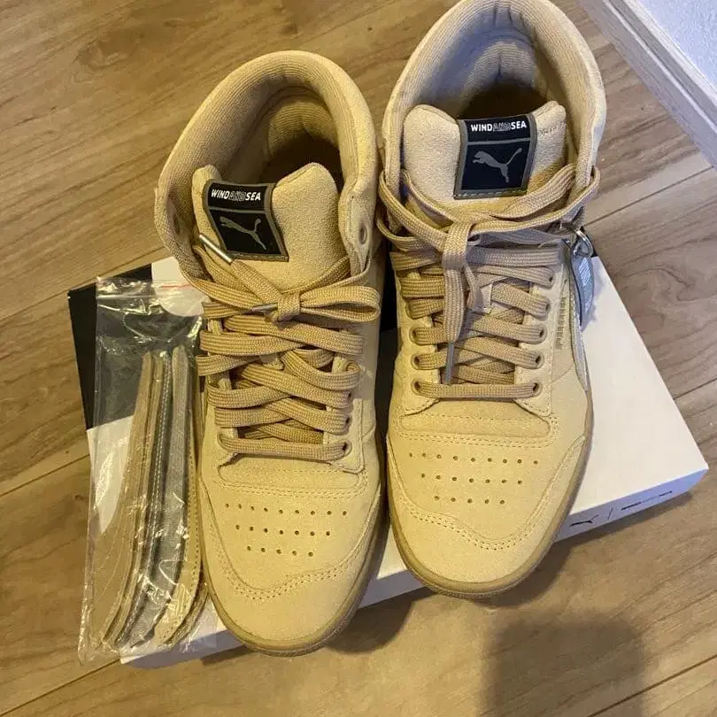 윈드앤씨 x PUMA 베이지 하이컷 스니커즈 여분 끈 포함