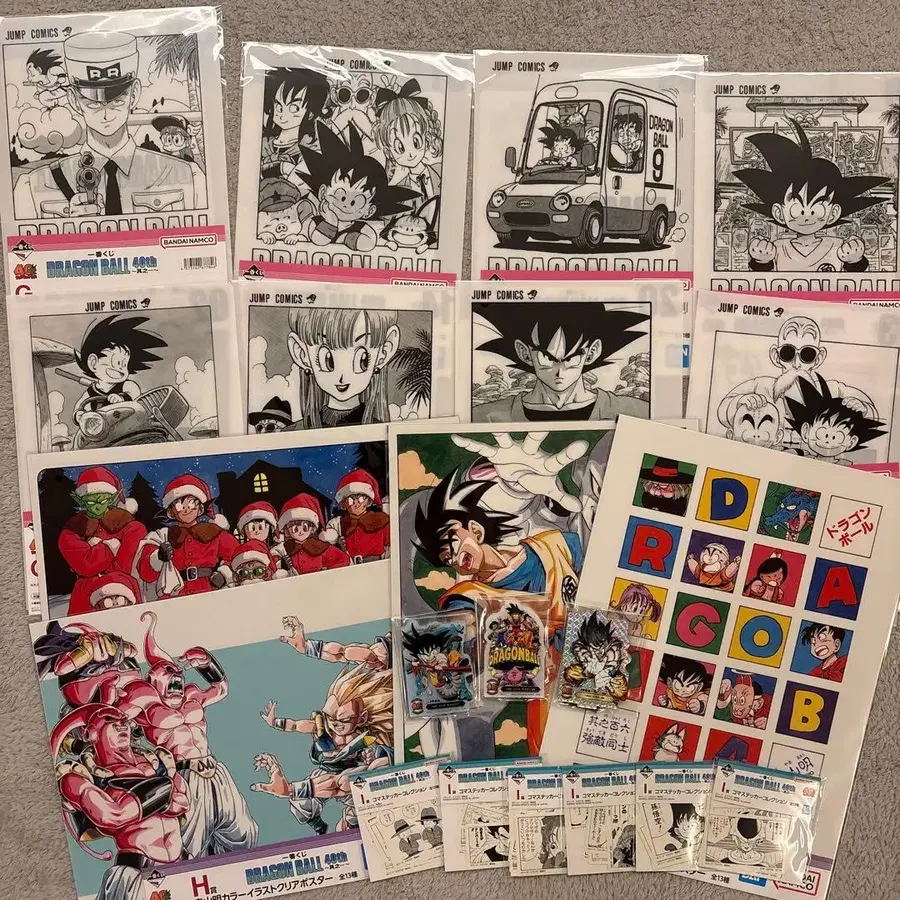 봐주셔서 감사합니다! 드래곤볼 제일복권 40주년 제1탄 F상 ACLLECT 3종 H상 클리어 포스터 4종 G상 클리어 파일 8종 I상 시계 부품 스티커 6종 상기 상품 묶음 판매입니다. 낱개 판매는 불가하오니 양해 부탁드립니다. F상 외에는 모두 미개봉입니다. 접지 않고 발송합니다. 즉시 구매 OK입니다! 검토 잘 부탁드립니다!