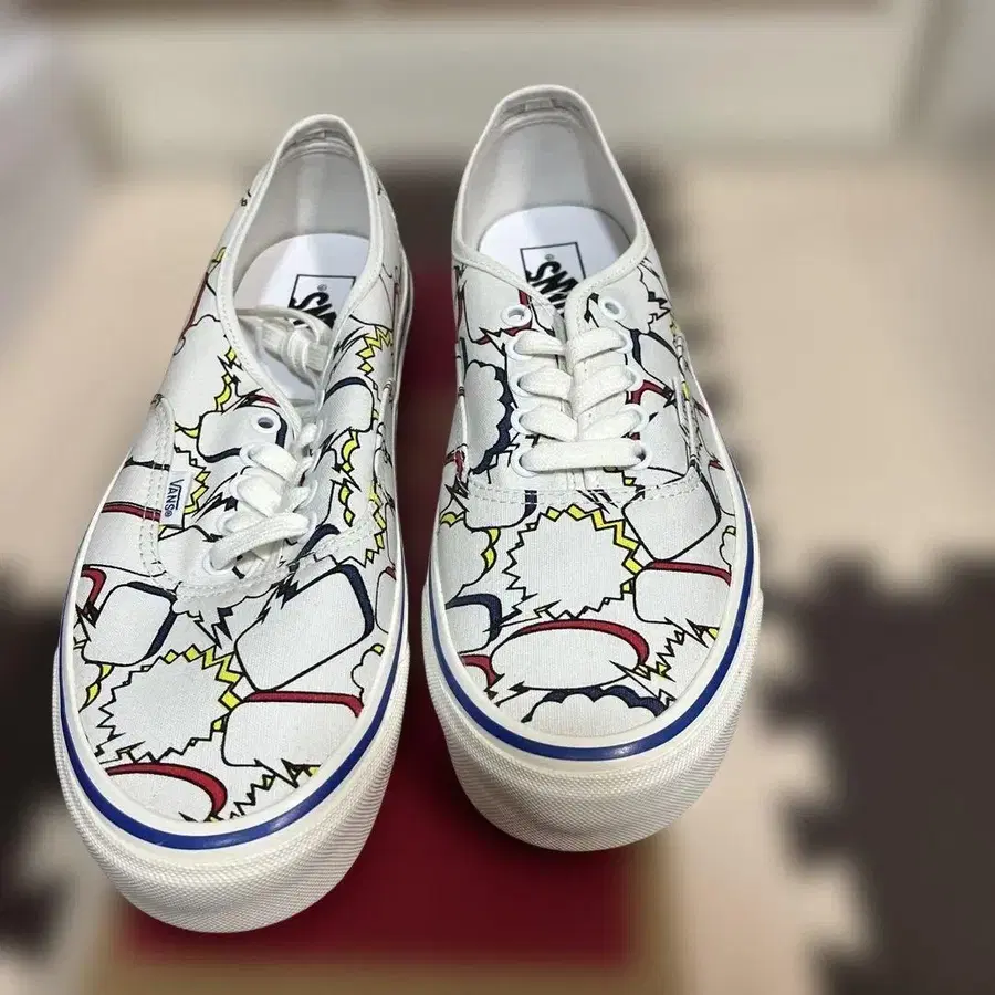 코믹스 스타일의 그래픽이 특징인 Vans 스니커즈. - 브랜드: Vans 오센틱 아나하임 팩토리 - 디자인: 코믹스 스타일의 그래픽 - 컬러: 화이트/멀티 컬러 - 밑창: 러버 솔 - 스타일: 로우컷 방문해 주셔서 감사합니다. 메인 컬러 - 화이트 모델명 - 오센틱 얼룩, 찢김, 냄새 등 - 없음