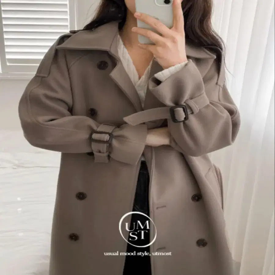 트렌치 스타일 더블 브레스트 코트 한국 패션 브랜드 realcoco의 코트입니다. 기장 - 약 110cm 가슴 너비 - 약 58cm 소매 길이 - 약 55cm 보풀과 코트 안쪽에 걸린 자국 같은 흔적이 있습니다. 색상: 모카 착용은 3회 정도이며, 탁하고 세련된 색상입니다. 작게 접어서 발송합니다.