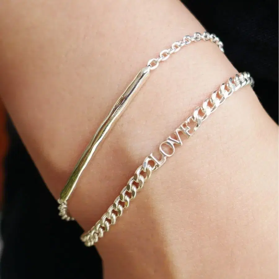 견고한 키헤이 체인에 숨어드는 LOVE 문자를 숨긴 듯한 디자인 팔찌. 아주 작은 위트는 언제까지고 질리지 않고 설렘과 두근거림을 느끼게 해줍니다. 와이드한 체인에 LOVE가 숨겨져 있는 실버 팔찌. 심플한 디자인 속에 위트가 가득한 e.m.다운 인기 아이템입니다! 볼륨감 있는 체인으로 남성적인 느낌 속에서도 귀여움이 빛납니다. 3회 정도 짧은 시간 착용했습니다.