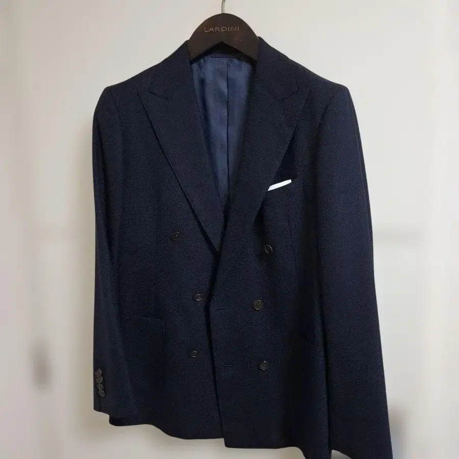 울 100% 더블 브레스트 테일러드 자켓 네이비