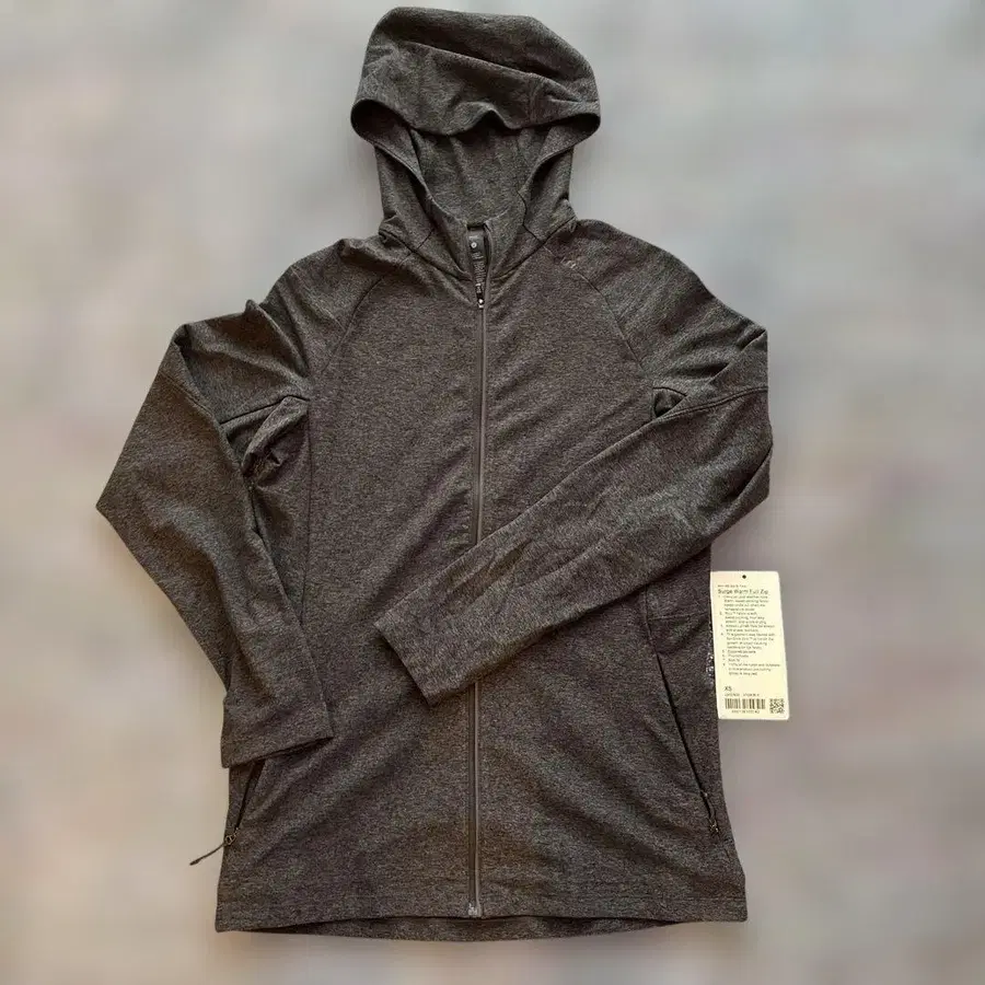 자동 번역되었어요. 원문보기그레이 색상의 후드 부착 후드티, Lululemon 제조, XS/TP 사이즈, 폴리에스테르와 엘라스테인 소재로 쾌적한 착용감.