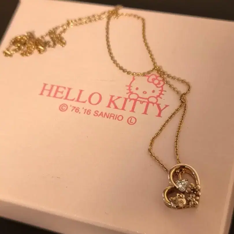 헬로키티 925 스털링 실버 하트 목걸이 골드 컬러 산리오 색상 - 골드 계열 재질 - SV925 부속품 - 상자