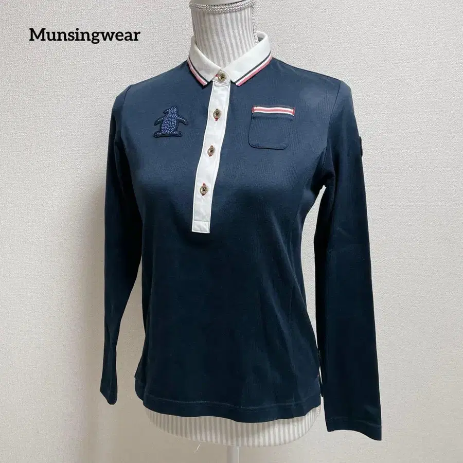 먼싱웨어 골프웨어 긴팔 셔츠 펭귄 와펜 네이비