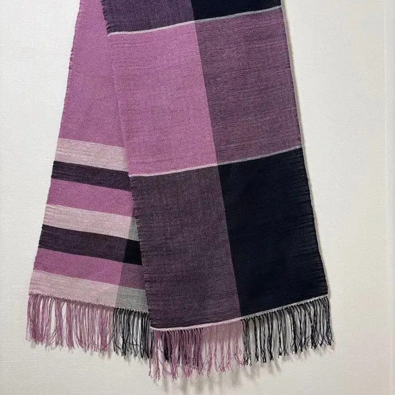 실크 수제 핸드메이드 [ A ] 보라색 계열 체크 무늬 머플러