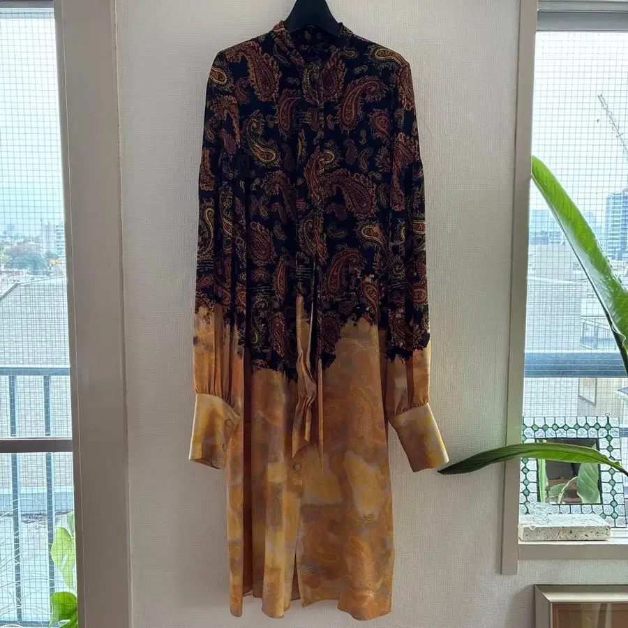 페이즐리 무늬 긴팔 셔츠, 리본이 달린 옷깃이 특징. - 브랜드: rokh - 디자인: 페이즐리 무늬 - 색상: 블랙, 오렌지, 베이지 - 스타일: 긴팔 셔츠 - 특징: 리본이 달린 옷깃 방문해 주셔서 감사합니다.
