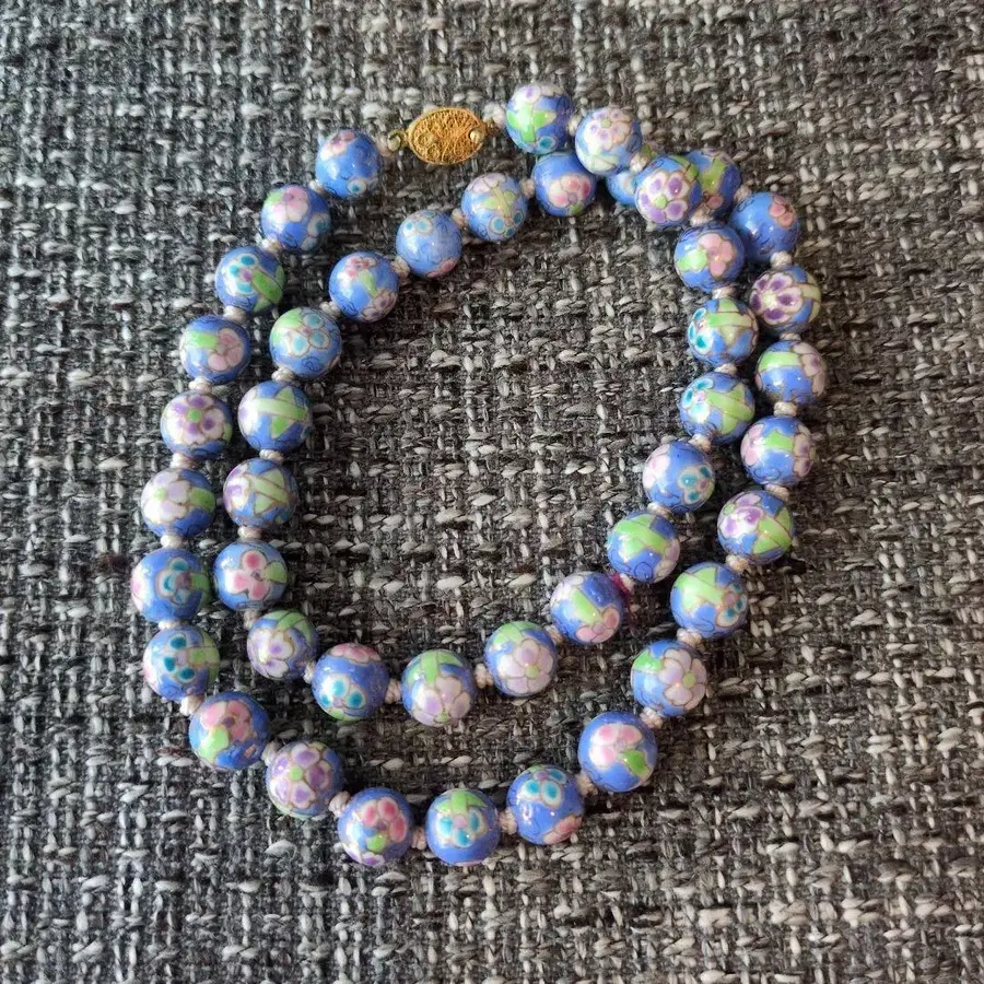 빈티지 에스테이트 블루 플로럴 칠보 비즈 목걸이