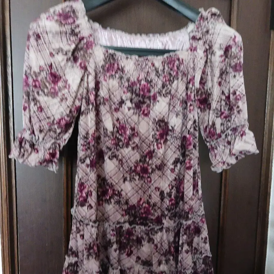 레스트로즈 꽃무늬 체크 반팔 무릎 기장 원피스