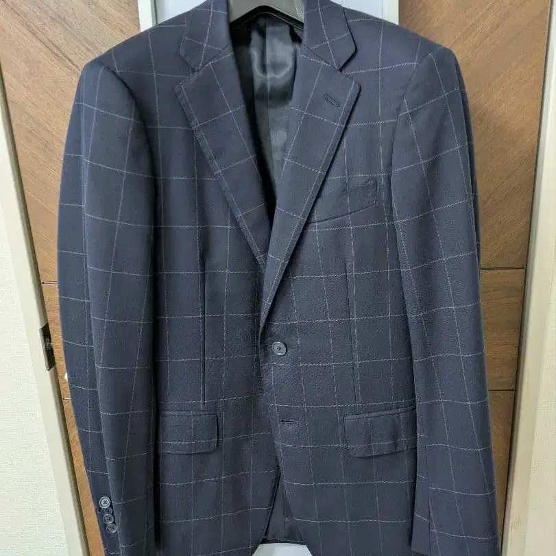 선명한 네이비 체크 무늬 비즈니스 자켓, 울 100%로 고급스러움. - 색상: 네이비 - 패턴: 체크 무늬 - 소재: 울 100% - 안감: 폴리에스테르 54% 레이온 46% 나일론 100% 평소에는 A5 자켓을 입지만, A5에 비해 약간 타이트한 제작이라고 생각합니다. 방문해 주셔서 감사합니다.
