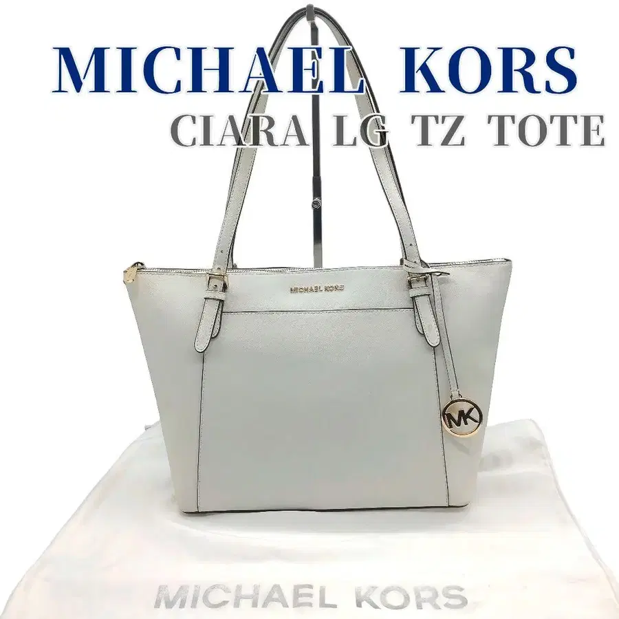 새상품급 마이클코어스 시아라 라지 EW 탑 지퍼 토트 화이트