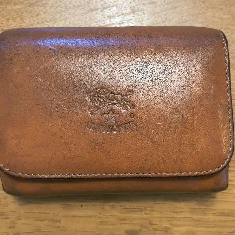 IL BISONTE 접이식 지갑 브라운 수납 봉투 포함