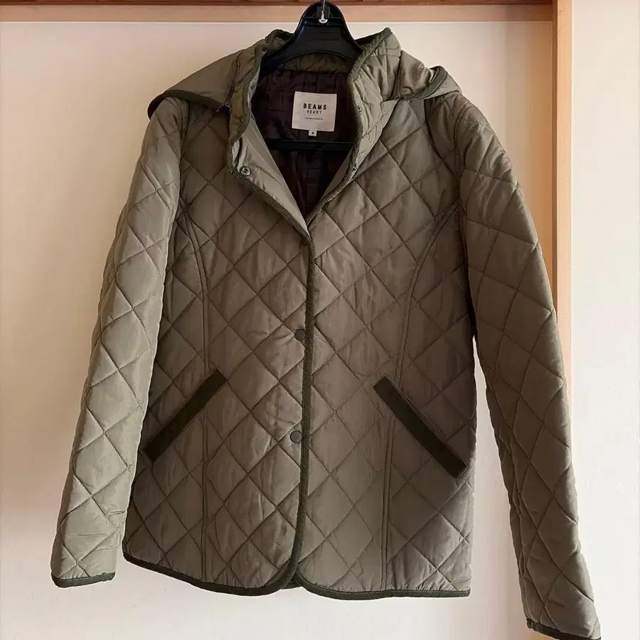 BEAMS HEART 올리브 그린 퀼팅 자켓