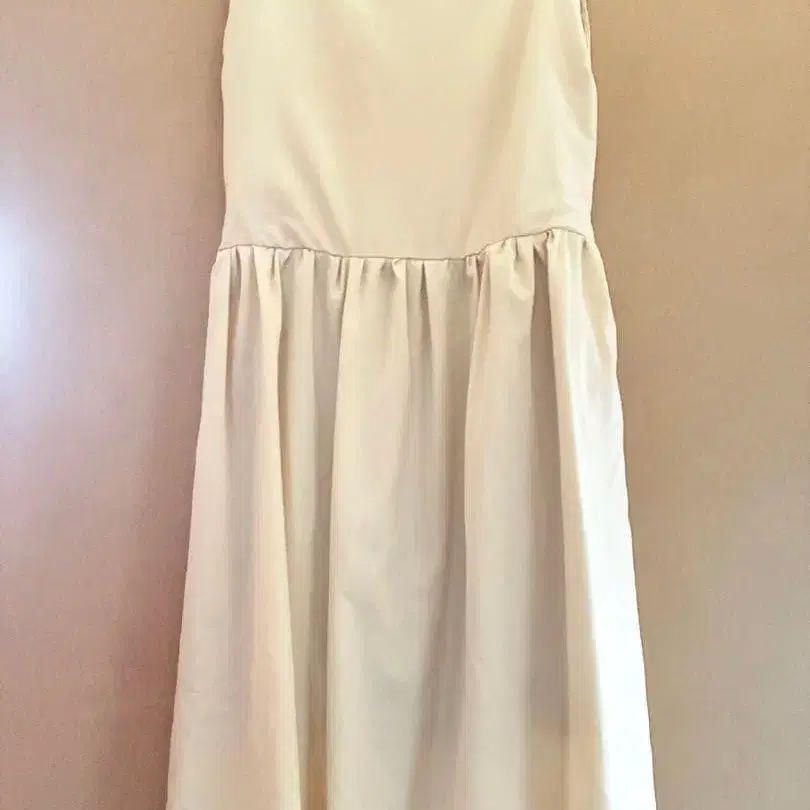 롱 원피스 아이보리 무지 면 울 슬리브리스 루즈핏 플레어