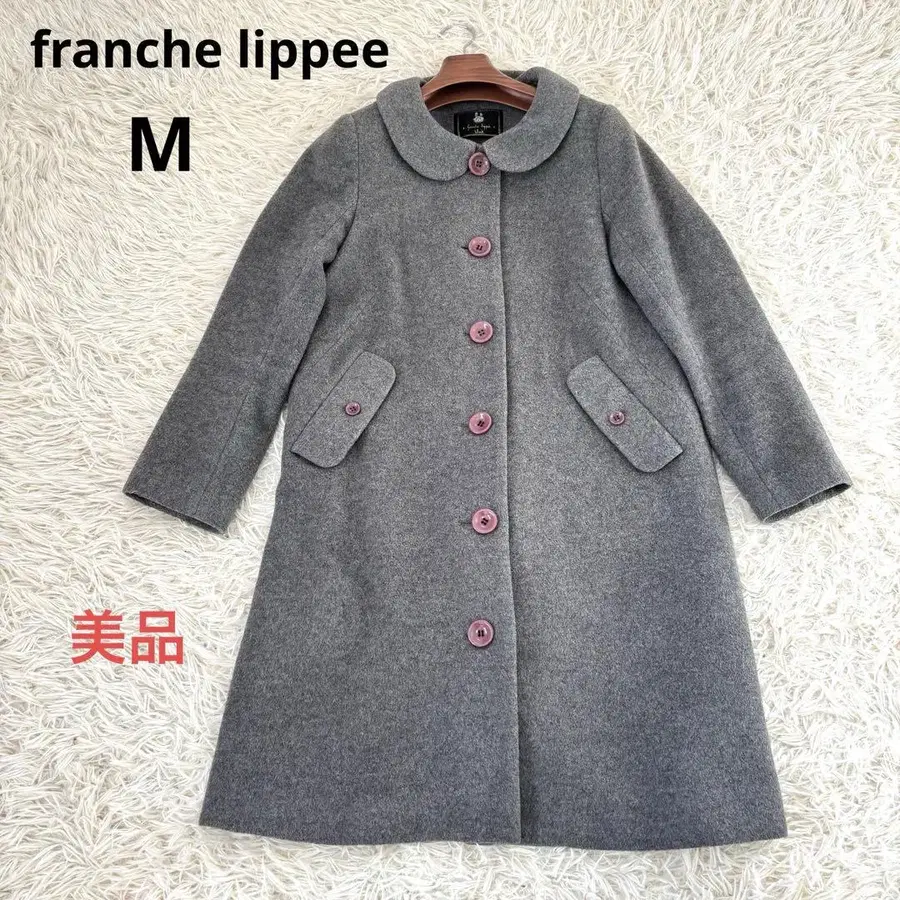 프랑슈리페 롱 코트 A라인 둥근 카라 그레이 울 뒷면 레이스 장식