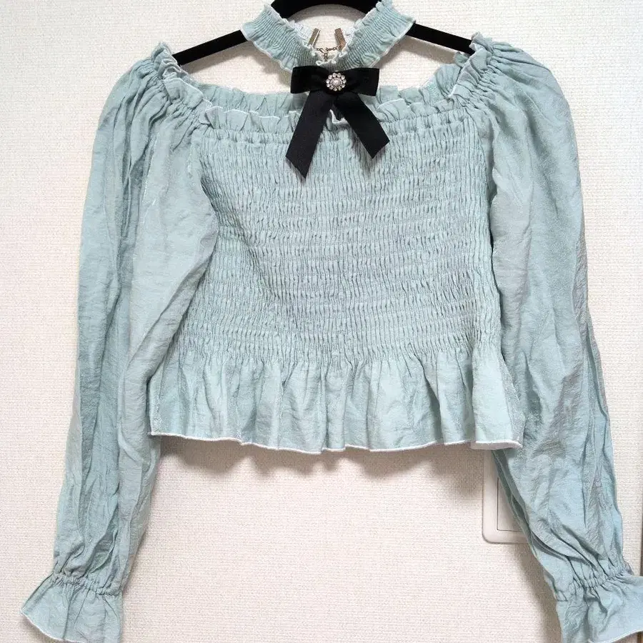 [ 새상품급 ] 로지타 민트 컬러 셔링 블라우스 초커 포함 지뢰계