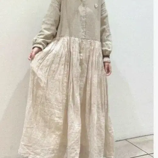 • 사만사 모스모스 30주년 기념일 린넨 100% 롱 원피스 가을 화이트