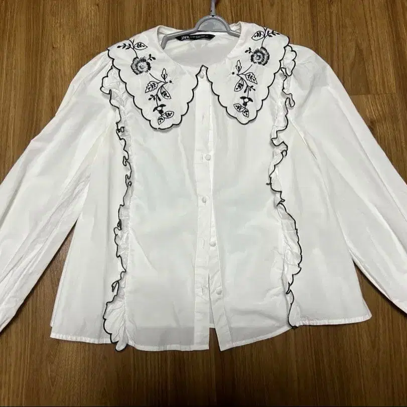 ZARA 화이트 코튼 자수 셔츠 카라 부착 블라우스 새상품급