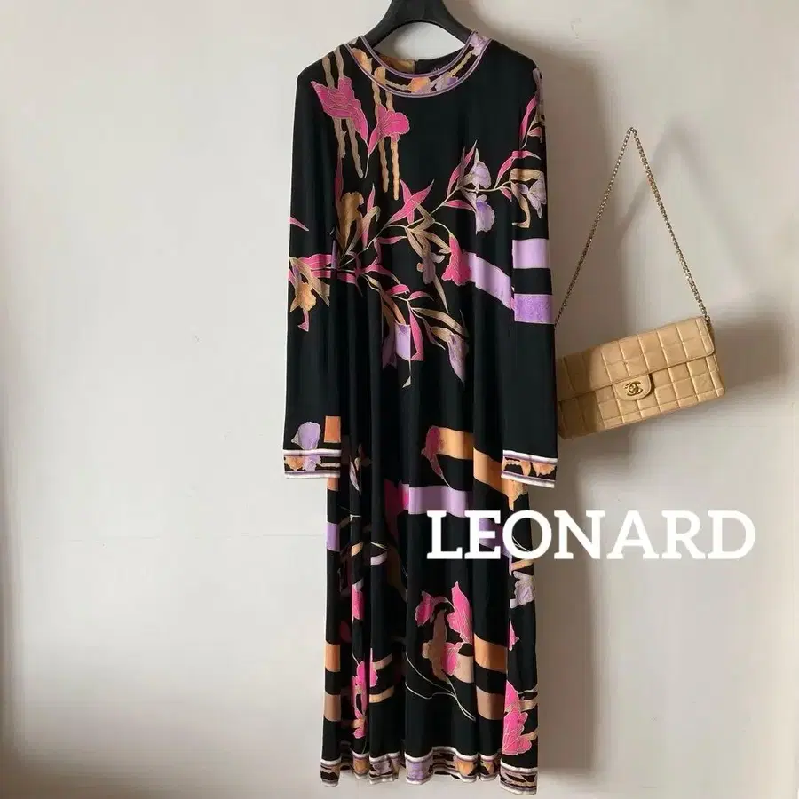 • LEONARD 레오나르 꽃무늬 수채화풍 긴팔 실크 원피스 M 사이즈