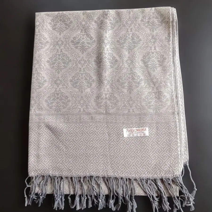 캐시미어 100% 파슈미나 그레이 계열 패턴 접이식 스톨