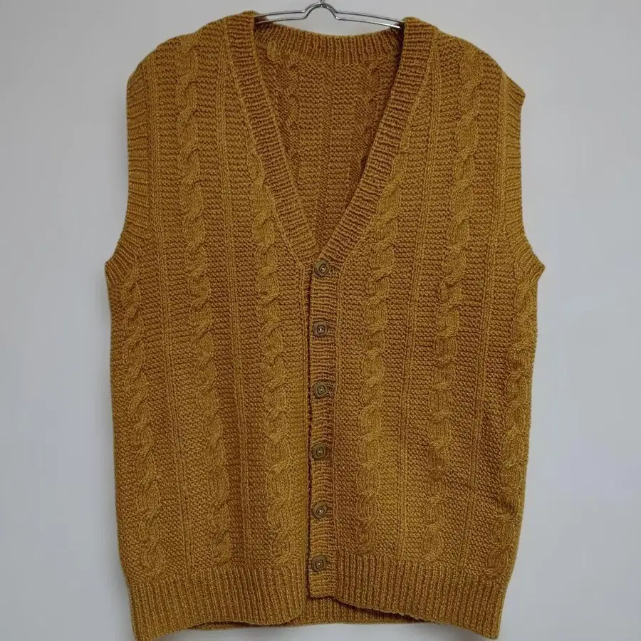손뜨개질 남성용 머스타드 케이블 니트 V넥 베스트 XL