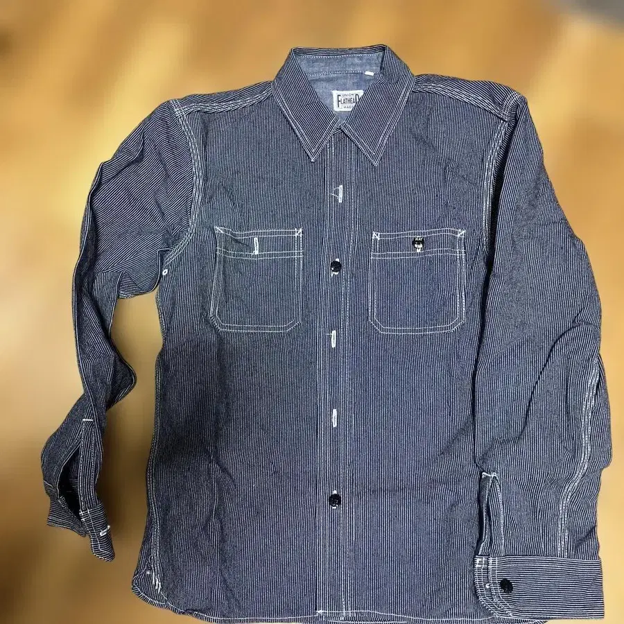 FLATHEAD 데님 긴팔 셔츠 네이비 스트라이프