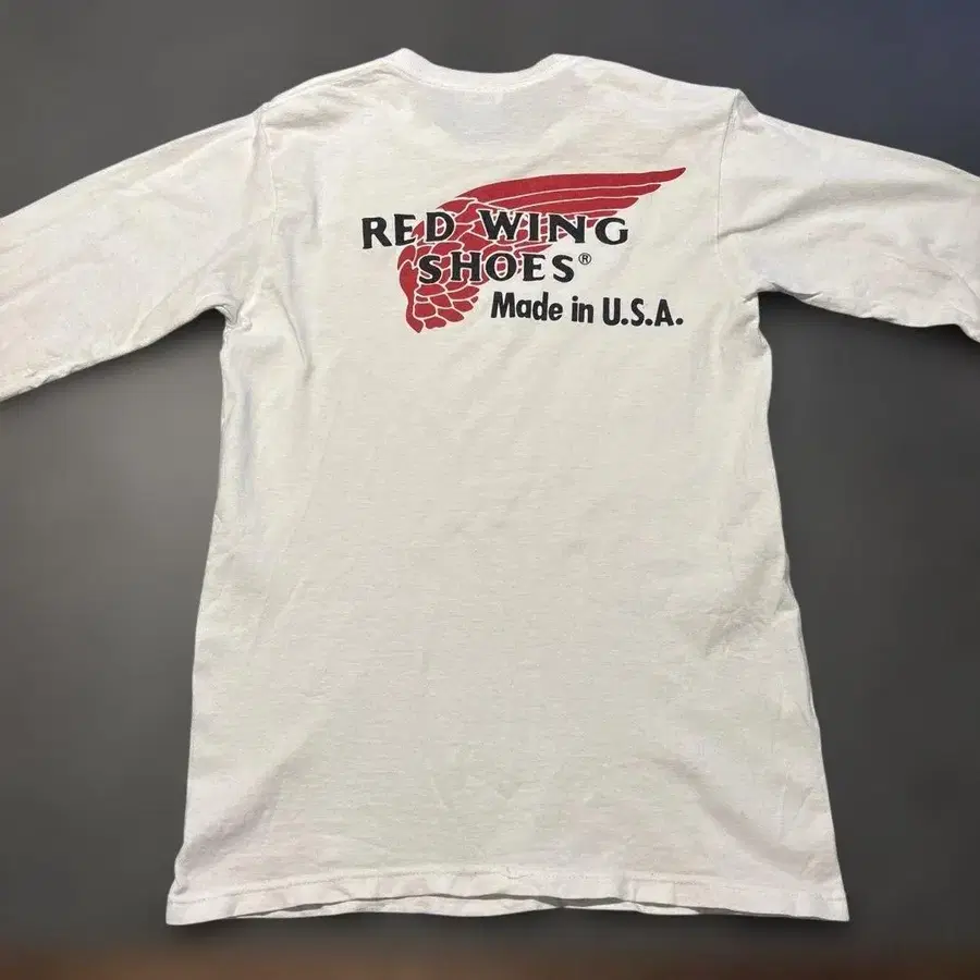 RED WING SHOES 90s 빈티지 롱 T셔츠 USA 제조 [ MADE IN HONDURAS ] - 브랜드: RED WING SHOES - 색상: 화이트 - 디자인: 전면 왼쪽, 뒷면에 프린트. 왼쪽에 택 포함. - 사이즈: S 컴플레인, 노 리턴 부탁드립니다.
