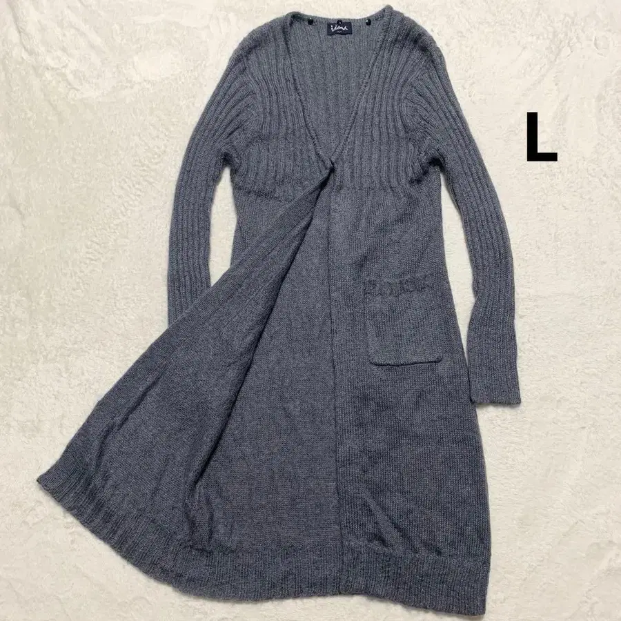 울 모헤어 니트 V넥 롱 가디건 그레이 L