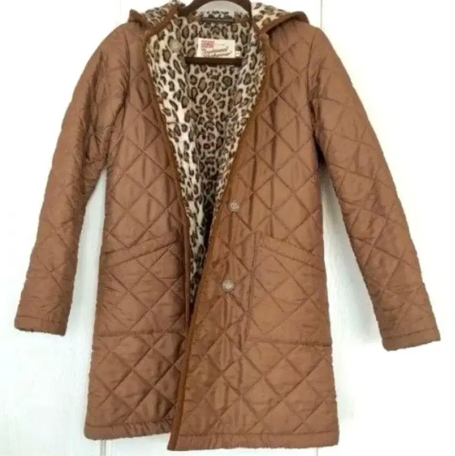 트래디셔널 웨더웨어 퀼팅 코트 트위드 후드 레오파드