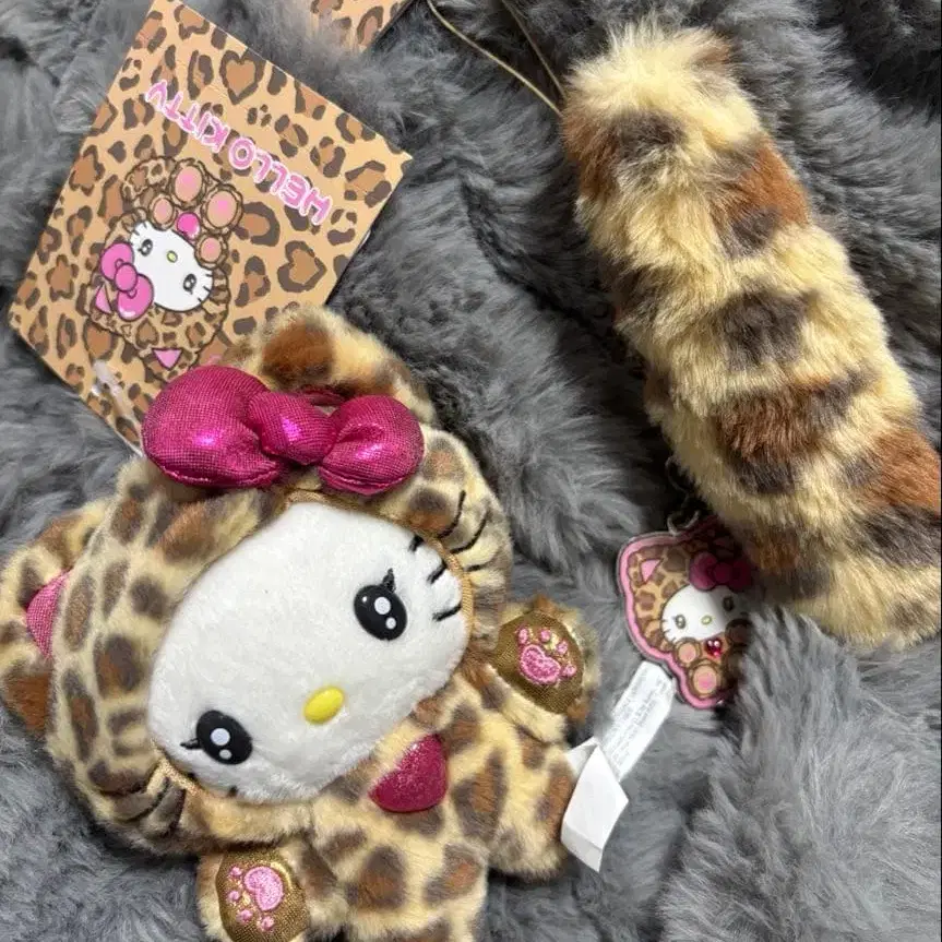 헬로키티 갸루 고양이 레오파드 무늬 봉제 인형 스트랩 2개 세트
