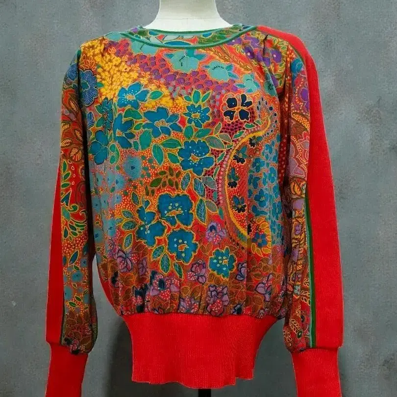 레오나르 레트로 구제 의류 레드 티셔츠
