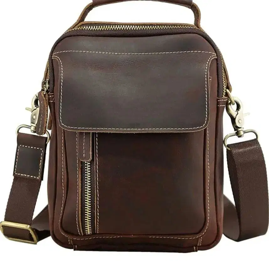 TIDING 앤티크 두꺼운 원단 소가죽 숄더백 사선 크로스백 2WAY