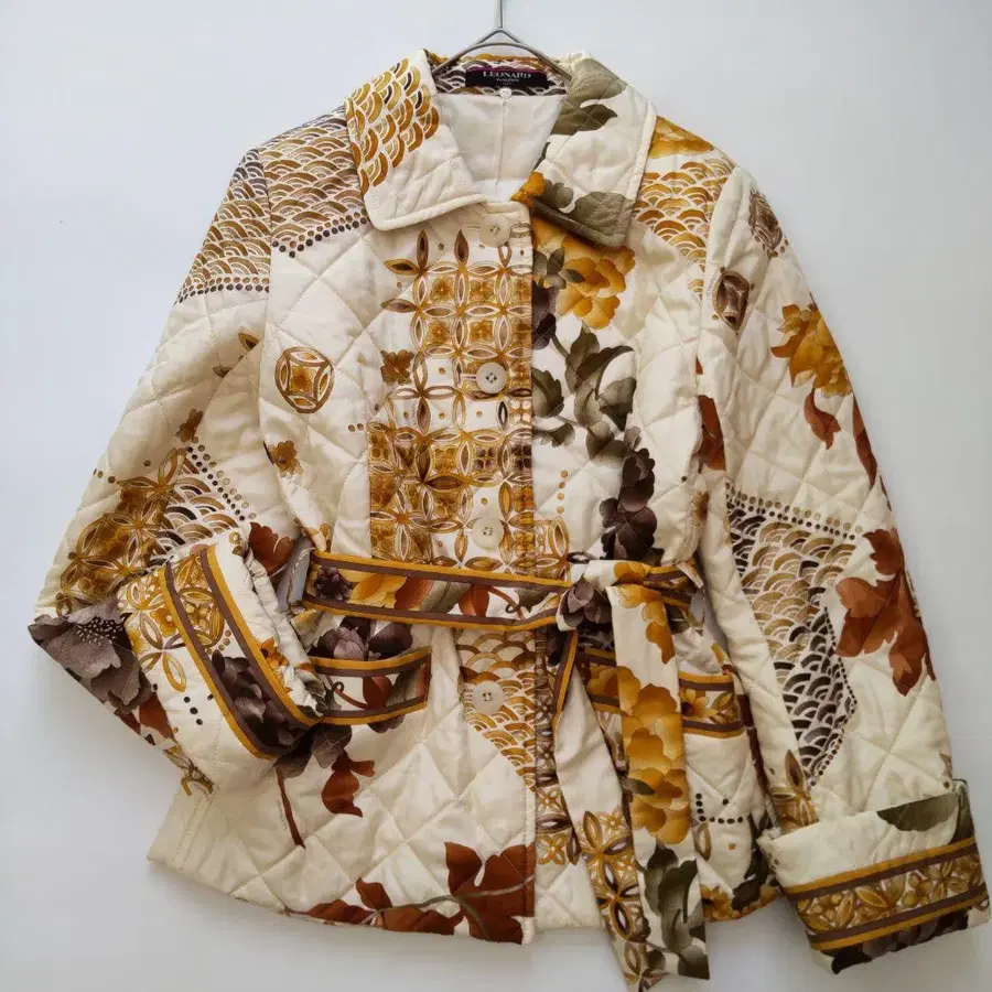 새상품급 레오나르 실크 꽃무늬 벨트 포함 충전솜 자켓 숏 코트