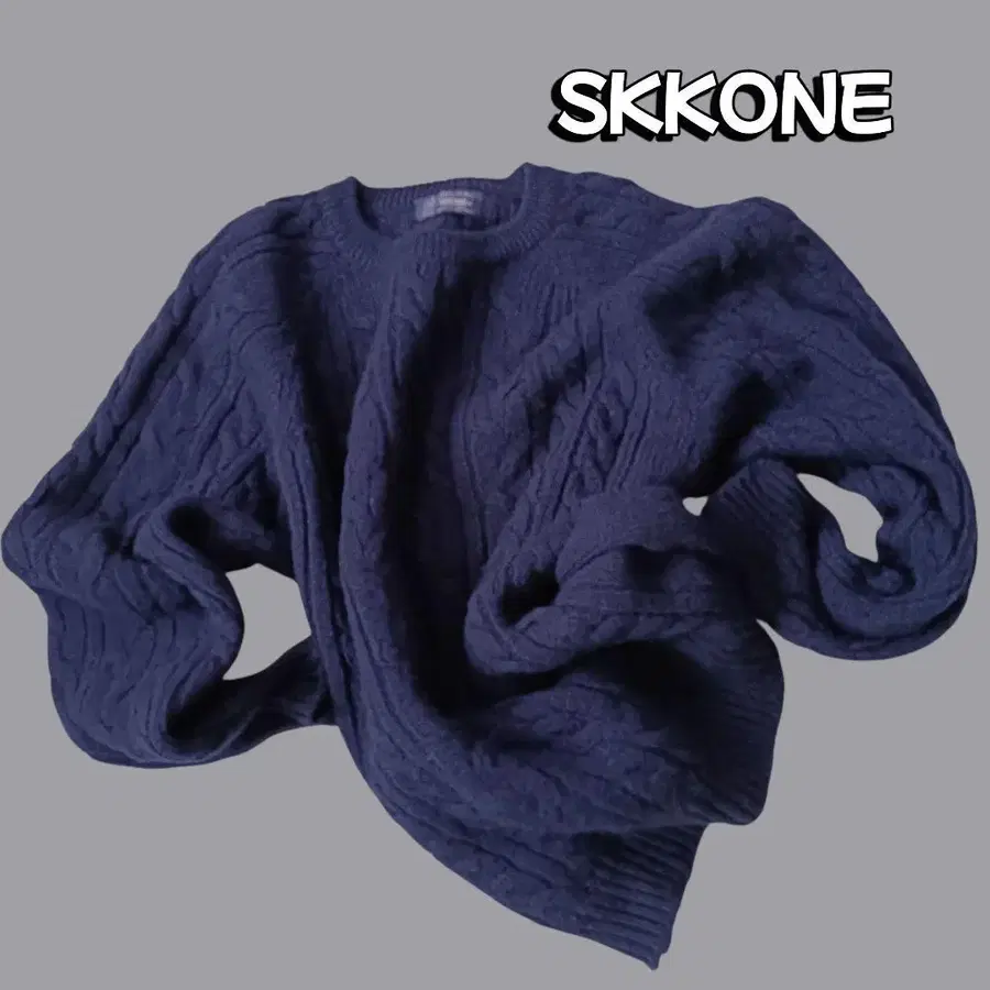 SKKONE 피셔맨 스웨터 니트 네이비 울 100% L