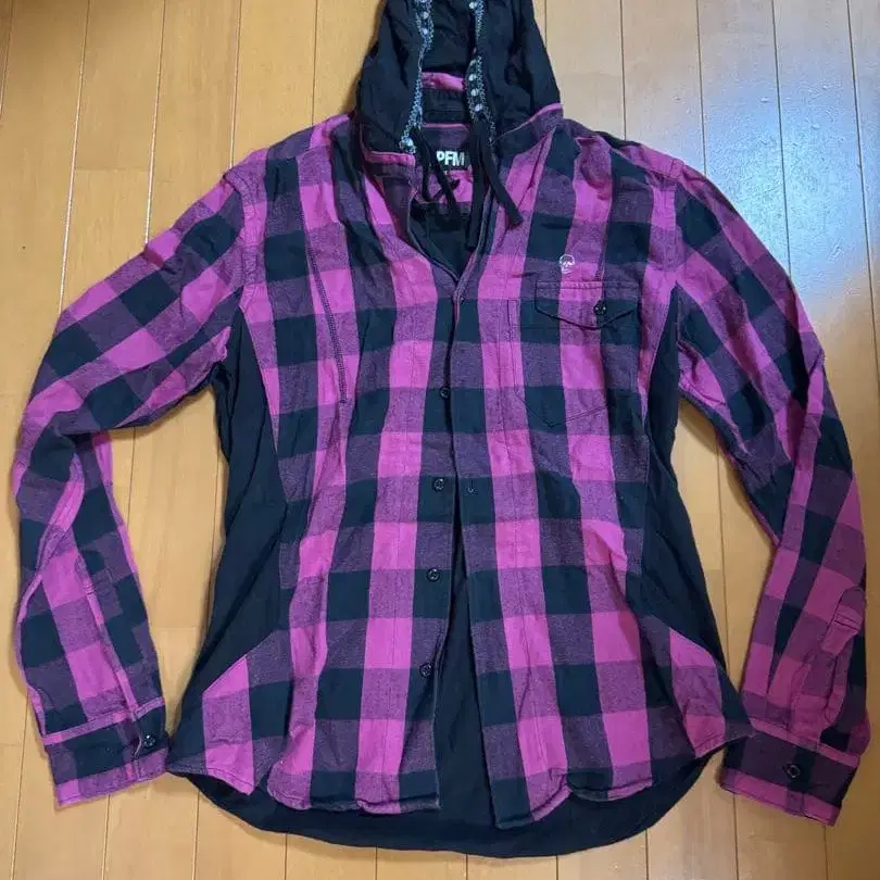 PPFM 후드 부착 핑크 블랙 체크 셔츠 M 사이즈