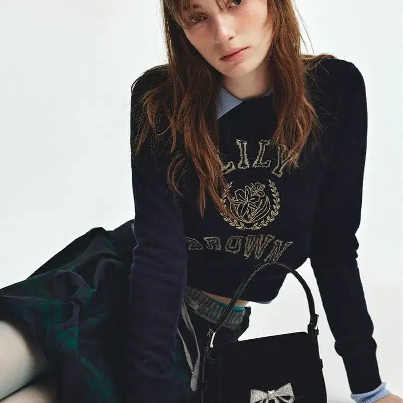 LILY BROWN 라멜로 자카드 로고 니트탑