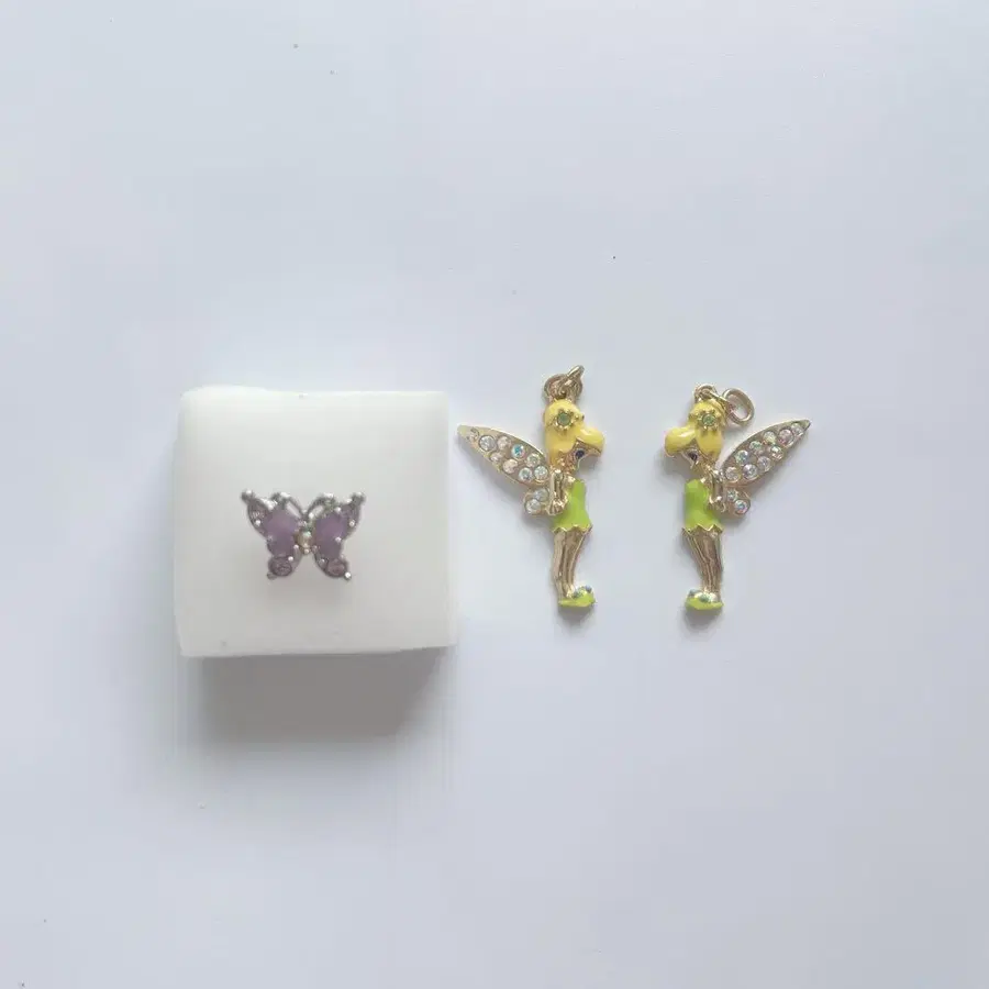 봐주셔서 감사합니다. 약 20년 전, Anna sui와 Disney의 콜라보 상품입니다. 원래는 양쪽 귀용이었으나, 나비 귀걸이 한쪽을 분실했습니다. 팅커벨 참은 한쪽을 몇 번 펜던트 탑으로 착용했지만, 그 후 보관하고 있었습니다. 팅커벨 참을 귀걸이에 통과시켜 두 개를 함께 착용할 수 있는 상품입니다. 팅커벨, 나비 양쪽에 Anna sui의 로고, 팅커벨에 Disney의 로고가 각인되어 있습니다. 큐빅의 깨짐이나 벗겨짐, 변색, 약간의 흠집 외에는 흠집이 보이지 않습니다. 나비 귀걸이 쪽은 귀걸이 봉 부분에 왜곡이 보입니다. (귀걸이 한쪽 결품 및 봉의 왜곡 때문에 [흠집 및 얼룩 있음] 상태로 하고 있습니다. 팅커벨 쪽 단독은 [미사용에 가까움] 정도의 새상품급입니다.) 지금은 보기 드문 레어한 상품입니다. 좋아하시는 분, 어떠신가요? 잘 부탁드립니다.