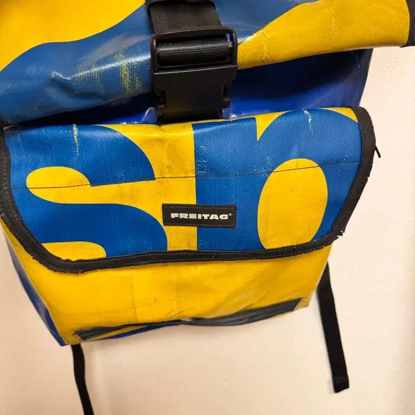 레어 FREITAG 로고 백팩 파랑/노랑